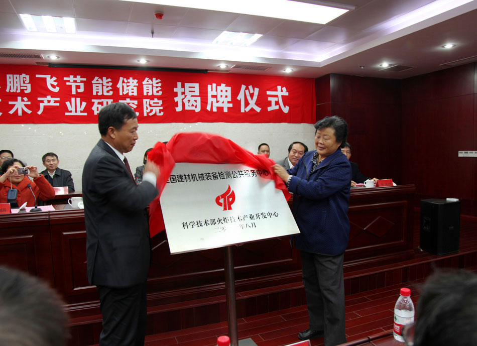 2014年11月29日上午10時,江蘇鵬飛節能儲能新技術產業研究院正式揭牌成立??h政協主席朱春、中國建材機械工業協會常務副會長王玉敏、江蘇省建材行業協會會長聶長蘭,中科院、南京工業大學、上海交大、安徽理工、鹽城工專等高校院所的專家教授,縣科技局、人社局等相關部門負責人及部分客商,150多名代表參加了揭牌儀式。副縣長盧忠平主持了揭牌儀式。