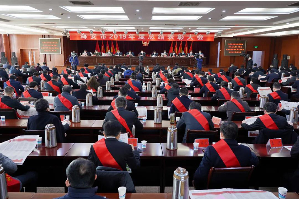 3月14日上午,海安市召開2019年度總結表彰大會,表彰全市各條戰(zhàn)線涌現(xiàn)的先進單位和個人,由于受新型冠狀肺炎疫情的影響,會議實施一人一桌簡便召開。會議設主會場和分會場,由海安融媒體中心進行現(xiàn)場直播。市四套班子全體負責人,各區(qū)鎮(zhèn)、各部門主要負責人、受表彰對象代表出席會議。會議由于立忠市長主持,宣讀表彰決定,獲獎單位分別上臺領獎,顧國標書記做了重要講話。鵬飛集團榮獲海安市委、市政府授予的杰出貢獻獎、工業(yè)百強企業(yè)、開放型經(jīng)濟先進企業(yè)、海安市市長質(zhì)量獎、王家安董事長當選六星級企業(yè)家。