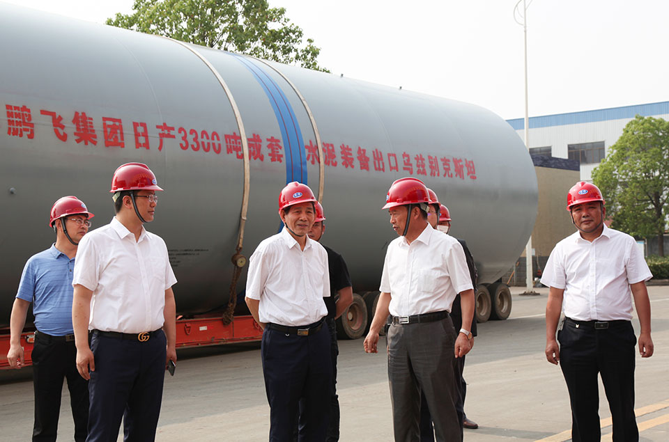 喬龍德參觀了鵬飛集團回轉窯、輥壓機、立磨等主機設備生產基地、公司產品形象展示廳,鵬飛集團董事長王家安詳細地向喬龍德會長介紹了近幾年公司取得的進步與發展,在匯報會上他從加強疫情防控恢復生產,做好新技術裝備研發,加快“走出去”步伐,延伸服務型制造,目前國外訂單和去年、今年的經營等方面向喬龍德進行了一一匯報。特別是在“走出去”過程中鵬飛集團不斷提升自身競爭能力,產品出口世界70多個國家,向超過50個“一帶一路”沿線國家出口產品并提供一站式解決方案。在抗擊疫情影響過程當中鵬飛集團制定實施周密的工作方案,既確保了員工的健康安全又能按合同要求完成訂單,憑借強大的技術實力和服務能力,出口業務和訂單不斷增加,預計全年出口業績將持續增長。