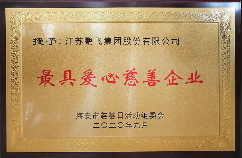 近日,海安市慈善基金會表彰了慈善工作先進集體和先進個人,基于在履行社會公益責任方面的突出表現和良好反響,江蘇鵬飛集團被慈善基金會授予“最具愛心慈善企業”稱號。